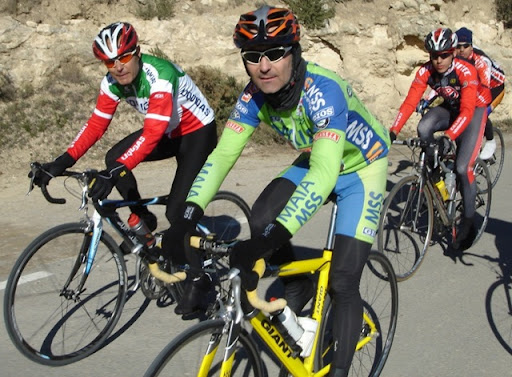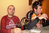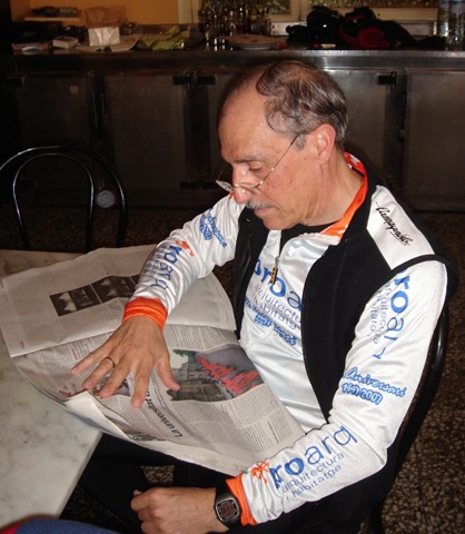 Abajo, Carbonell y Pedrito con su mallot de campeón de Italia de cuando corría en el Liquigas.