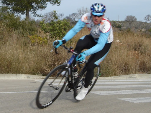 Abajo, Joan Font del www.fomobikes.com tensando la carrera en el momento decisivo.