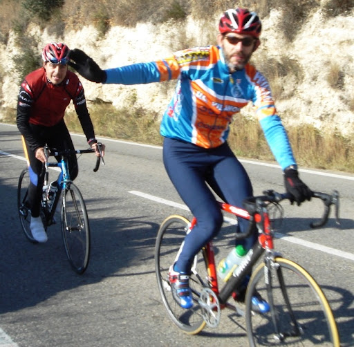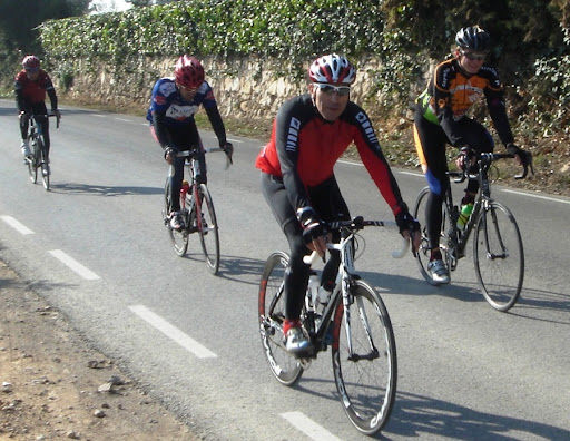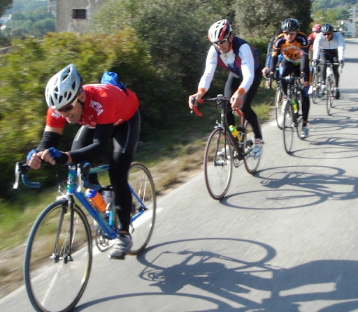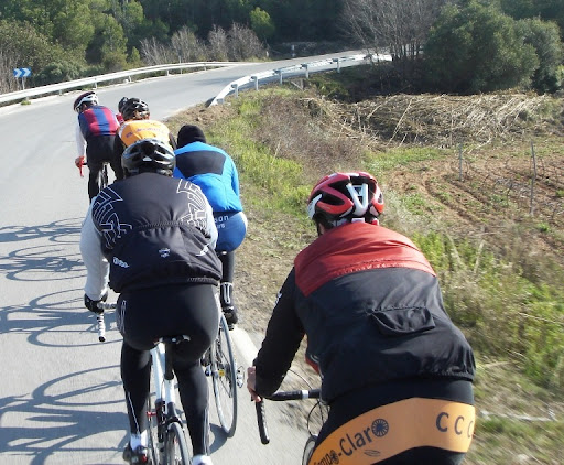 Nos íbamos acercando hacia L'arboç, donde empieza la carretera del pantano, donde se arrancan las motos y ya no se para hasta Vilanova. El primero en liarla era Pere Rovira y el resultado conseguido a sido, ir a fondo hasta coronar el repecho del Chatarrero. Por cierto, tengo el orden de paso en fotos.
