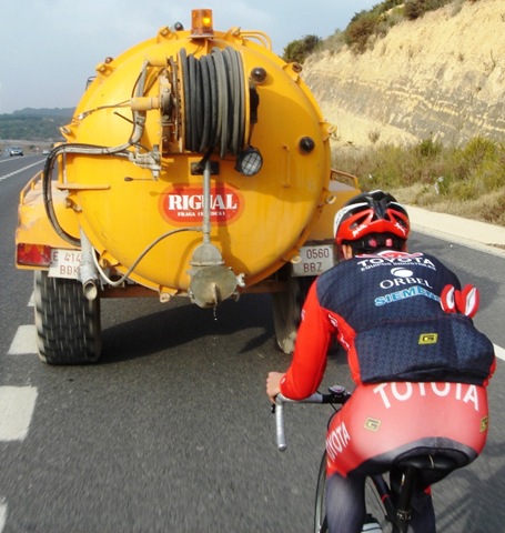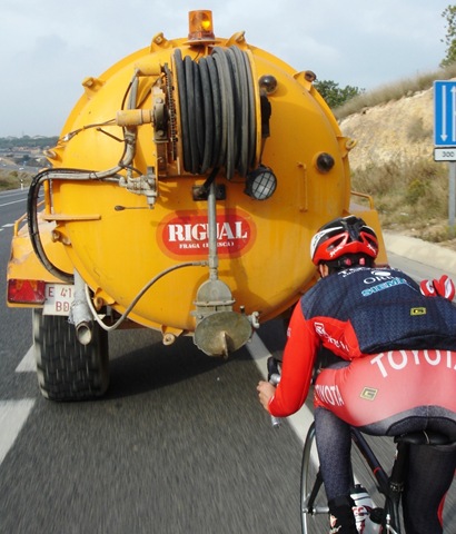 Jueves, hoy era algo diferente salía a entrenar desde Reus, de salida aun no se donde me metí pero encontré una preciosa carretera hacia Castellvell del Camp y que terminaba en la Selva del Camp; todo lo que tenia de bonita lo tenia de dura. Seguí hacia el Morell, Perafort, Pallaresos (subí por los repechos de la Gran Clássica de Perafort). Entonces me llamo Victor Iturat que salía de Vilanova, nos encontremos cerca de Comaruga. De vuelta para Tarragona nos volvimos a encontrar con el famoso Tractor Rigual que nos dejaría hacer unos kilómetros a su rueda.