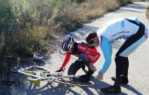 La grupeta seguía haciendo subidas y a un ritmo bastante fuerte, consiguiendo que Isaac Crespo partiera la cadena en un repecho. Crespo nos abandonaría unos kilómetros después por pájara, la primera del día. (Hoy el hombre del mazo se a hartado de darnos).