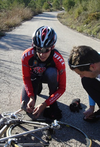 Pero como son las cosas, cuando parecía que Javi lo estaba pasando mal, subiendo el Puerto de el Pont d'Armentera Juan reventaba, otro que se iva para casa con su pájara.